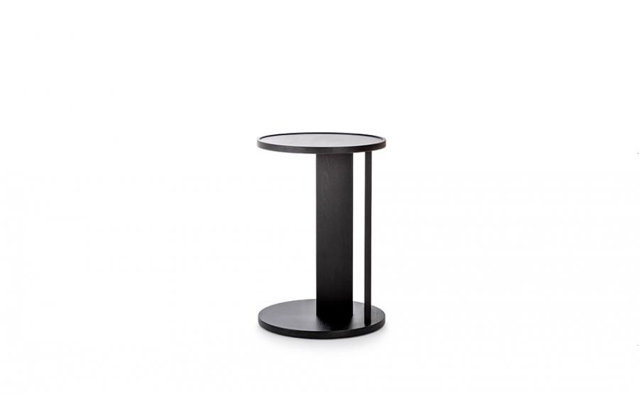 テーブルトップとフレームのレベル差や2枚のパネルで構成されている脚部のセッティングポジションのバランス、その間に生じる抜け感などがシンプルなラウンドテーブルをより豊かなものに仕上げています。
